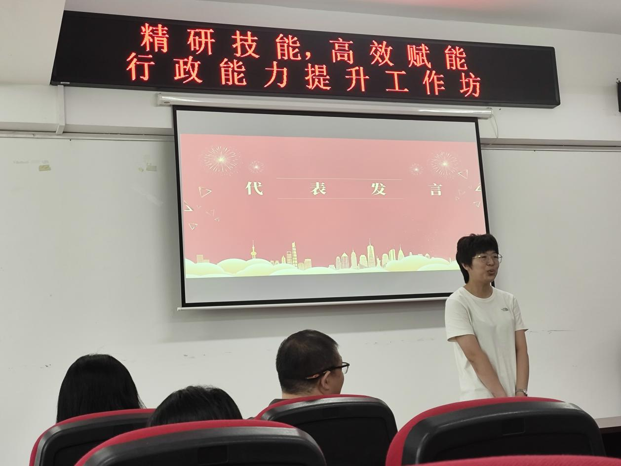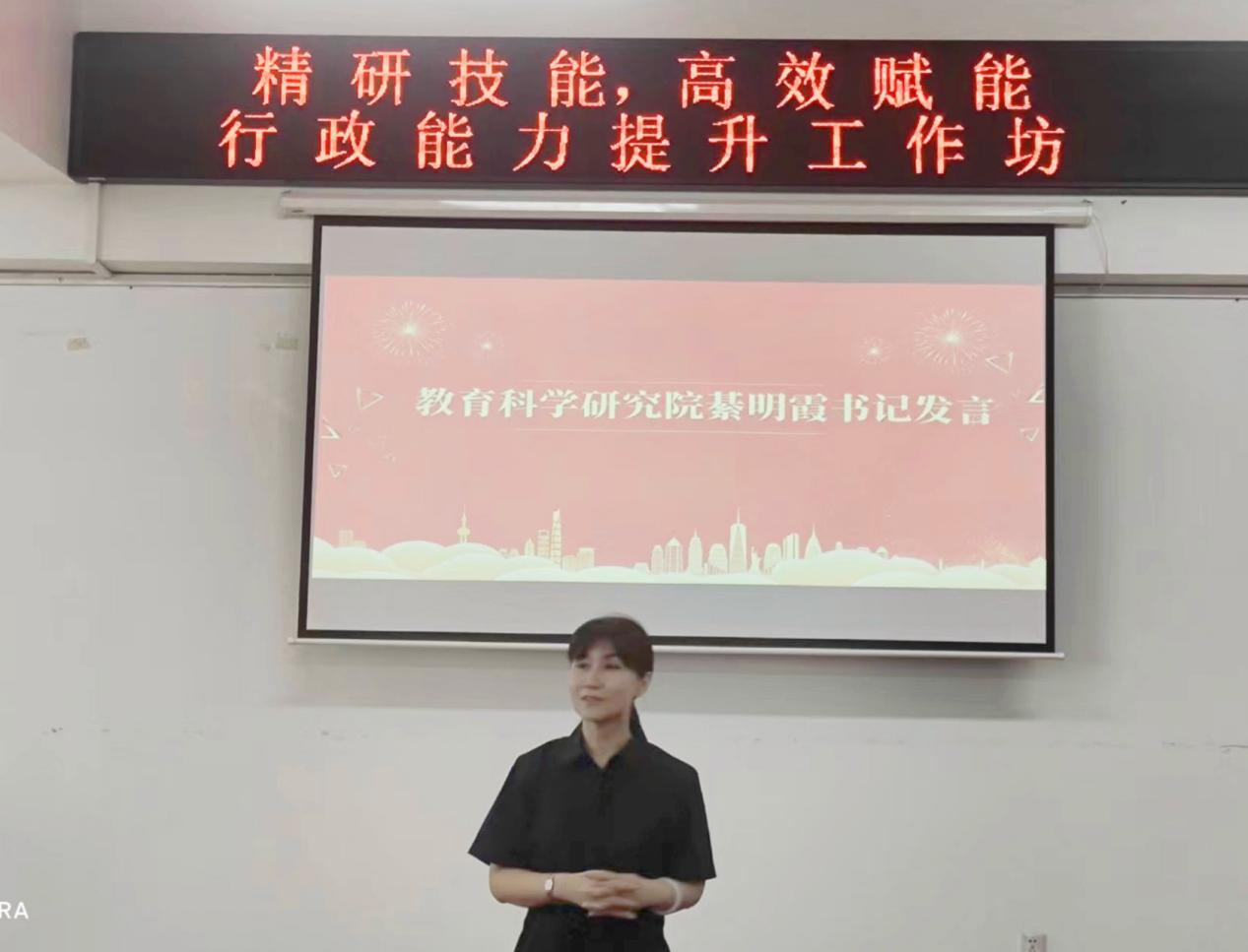 教育科学研究院党总支书记綦明霞为工作坊闭幕式致辞,表示此次联合工作坊内容丰富,通过名师引领和交流研讨,让行政人员突破传统思维的束缚,探索出更具效率的工作流程,相信将有力推动日后工作的高质量发展。(51视频 、政府管理51视频、新闻传播51视频、教育科学研究院供稿)