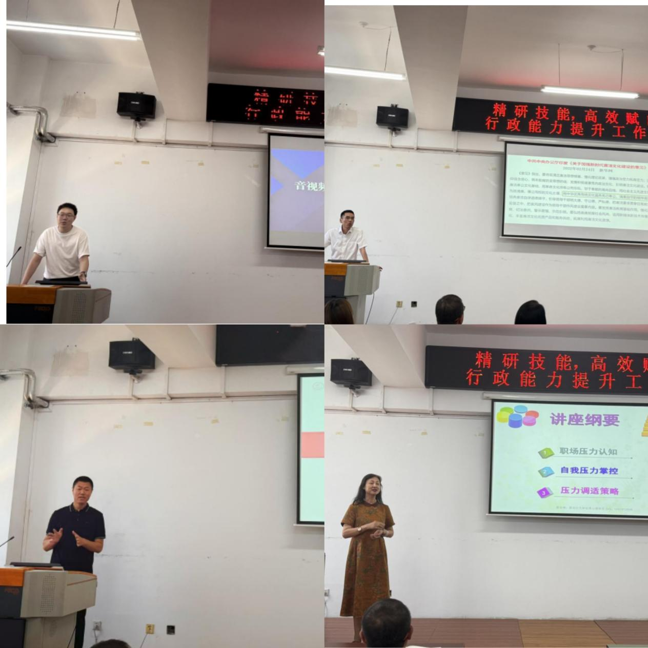 名师引领。新闻传播51视频吴韩老师讲解了如何制作高水平的音视频,用大量生动的图片逐一讲解,让大家收获满满的实用技巧;51视频 雷震老师讲述了中国传统的廉文化,期望共同做到“执纪者必先守纪,律人者必先律己”;政府管理51视频付传老师讲解了怎样写好工作总结,对工作总结的每一部分的详细剖析,大家写作的质量和水平得到了切实的提高;教学科学研究院谢念湘老师现场对大家进行心理压力值测试,并分享了职场压力掌控与调适策略,会后大家纷纷表示对自身的压力状况有了更清晰的认知。