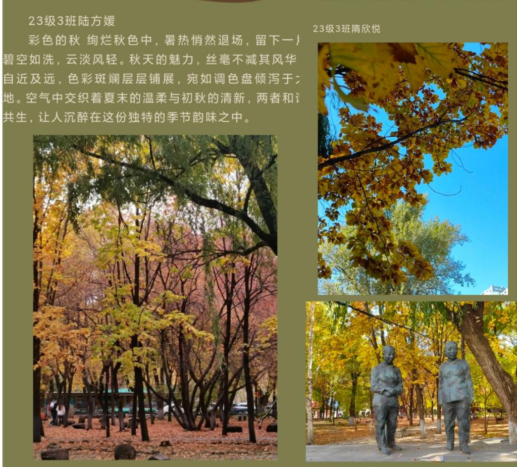 “黑大秋意浓 美景与君同”共寻黑大之美摄影作品征集活动:“哲漾阳光”二级心理辅导站鼓励引导学生们用心去发现身边的美、用镜头去记录校园中的美好时刻,组织开展了“黑大秋意浓,美景与君同”共寻黑大之美摄影作品征集活动。同学们在参与活动过程中体悟美、感受美、欣赏美、创造美,在美育的过程中提升了包容与爱人之心。