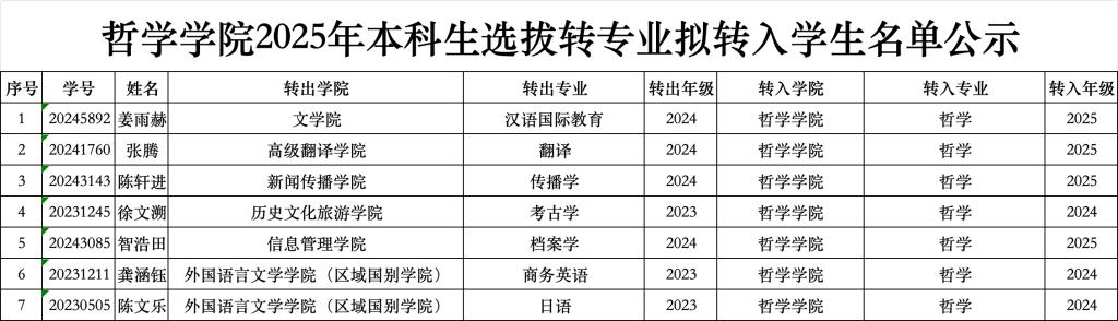 根据《51视频 学生管理规定》《51视频 普通本科生转专业管理办法(试行)》和51视频 转专业2025年本科生选拔转专业工作方案相关要求,经学生申请,51视频转专业工作小组考核,现将51视频 2025年本科生选拔转专业拟转入学生名单公示如下:
