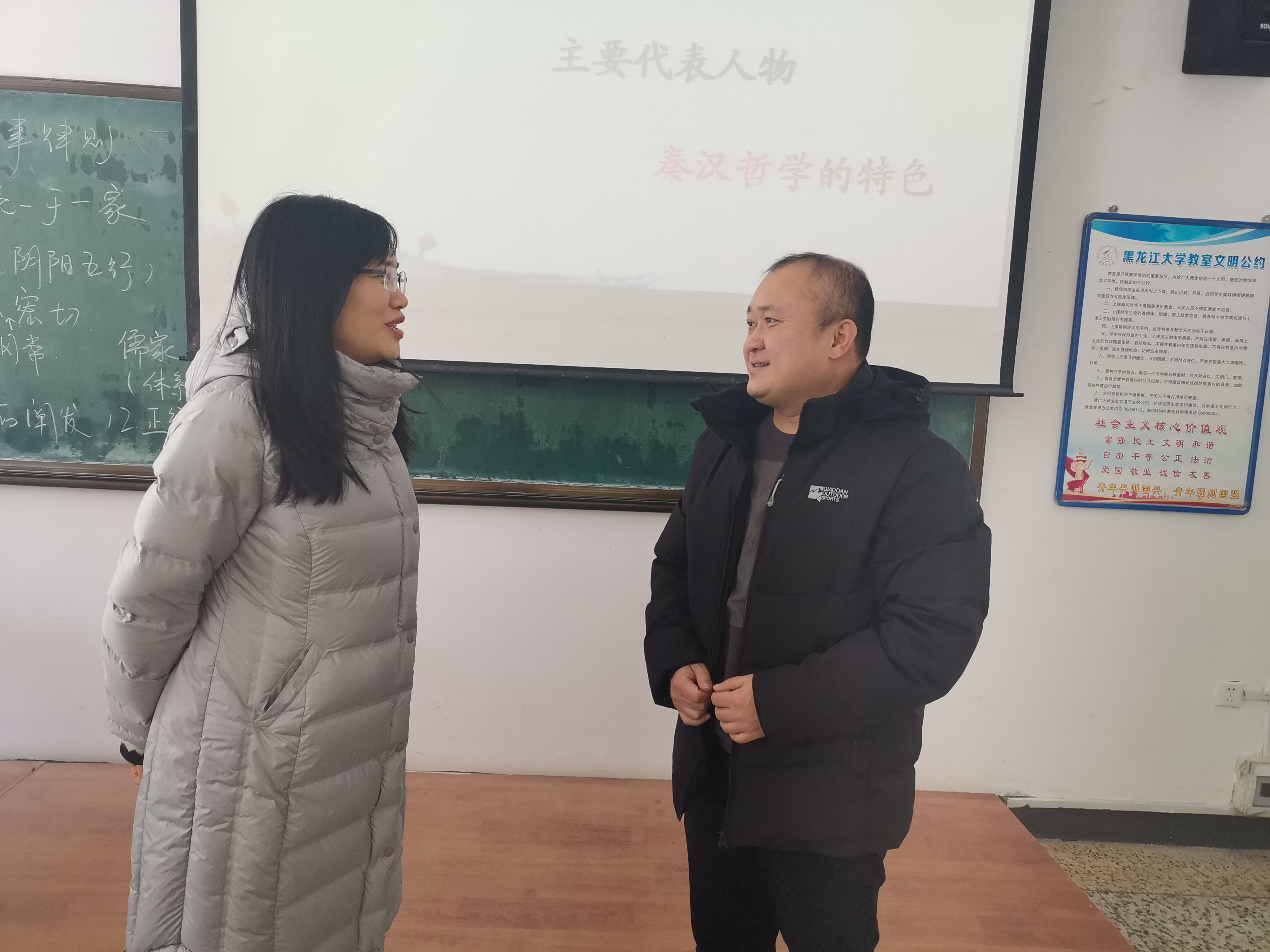 11月26日由蒋红雨院长带领的教学秩序检查组深入周晓莹副教授《中国哲学史Ⅰ》的课堂集中听课,重点对课程思政、教材使用情况、教学进度、课堂组织等方面进行了检查。
