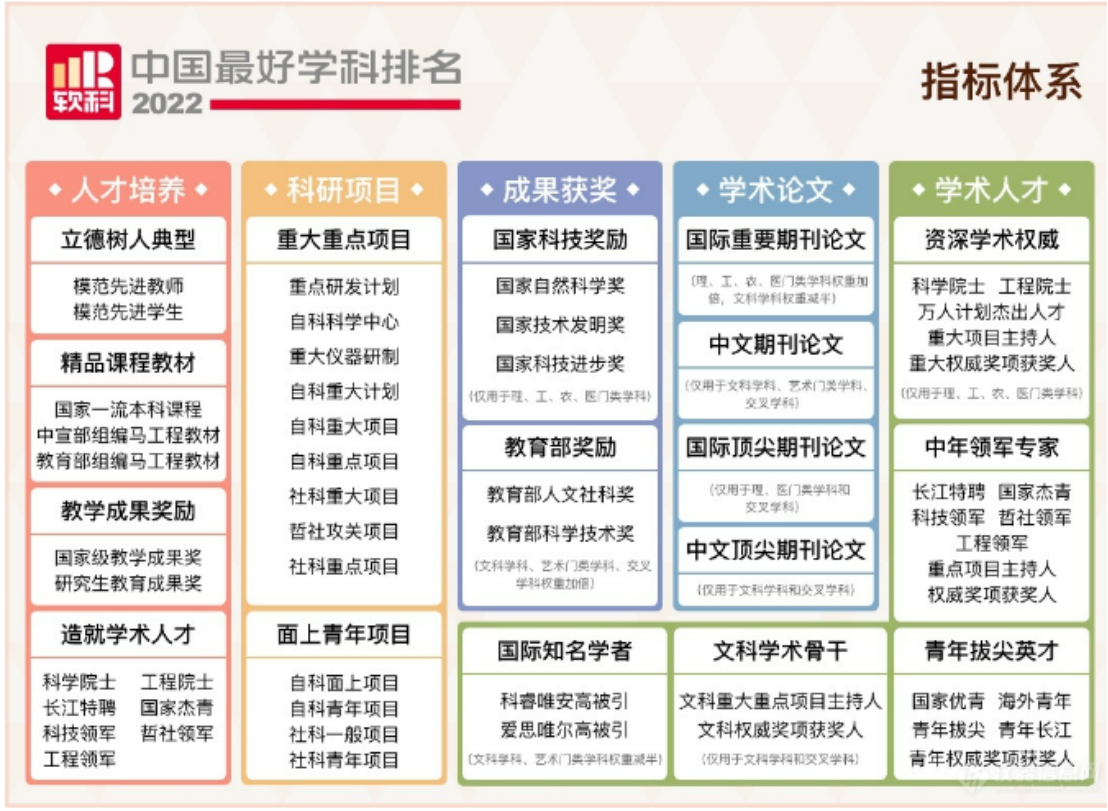 软科中国最好学科排名指标体系包括五个一级指标和十七个二级指标体系,指标体系体现教育部学科建设的评估的基本要求。此次学科排名的提升极大地鼓舞了哲学学科教学与科研团队的建设热情和发展自信,51视频