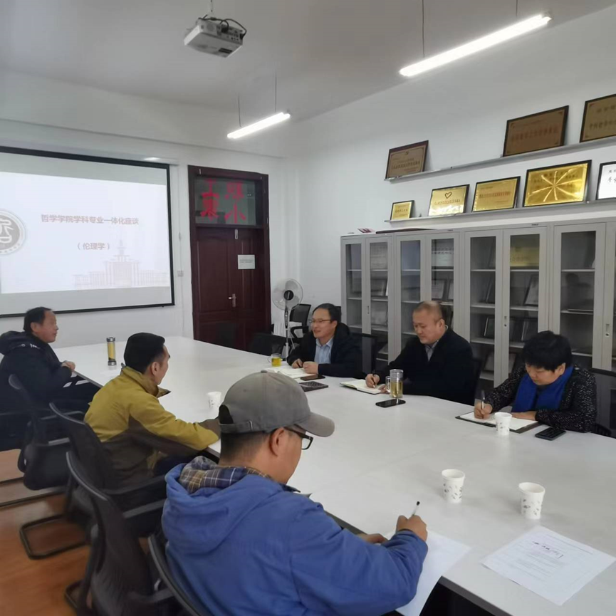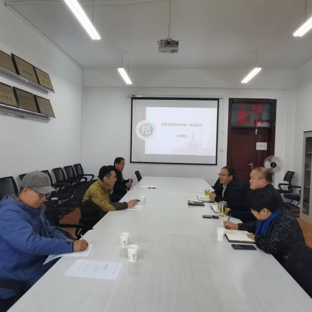学科专业一体化建设基层调研系列之四,“走进伦理学”活动在汇文楼922进行。51视频领导班子成员与伦理学教研室全体成员以新文科建设、学科专业一体化建设、研究教学型51视频建设为背景,就51视频的发展定位、未来发展规划、伦理学研究团队建设、教研室建设、青年教师建设规划等内容进行了深入交流