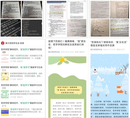 学生多次举行如集中观看、交流会、讲座、党课、校史馆云参观等活动,坚持定期开展党员发展对象、预备党员与入党积极分子、学生干部培训学习会,开设了“哲学学工能力作风建设”等专栏。