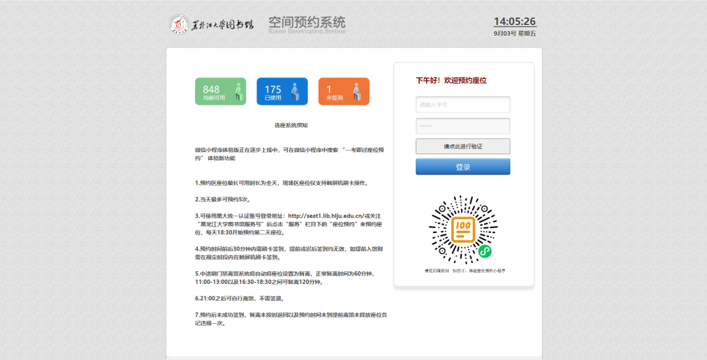 1、预约选座,需在所预约时段起始时间前后半小时内在选座机刷卡或扫码签到。