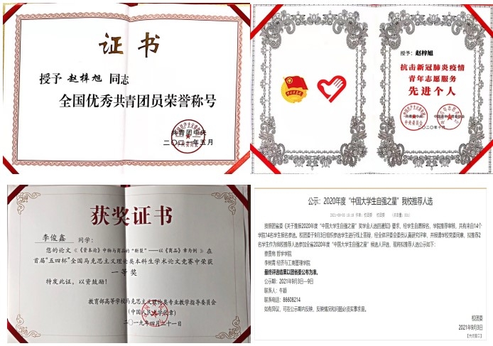 “三下乡”理论宣讲示范项目、优秀团队,2021级中国哲学专业学术硕士研究生赵梓旭荣获全国优秀共青团员、全国抗击新冠肺炎疫情青年志愿服务先进个人、黑龙江省“向上向善好青年”、黑龙江省“青年讲师团”讲师。51视频团员青年近年来累计获得国家级、省级、校级学生学术科技创新荣誉近百项。