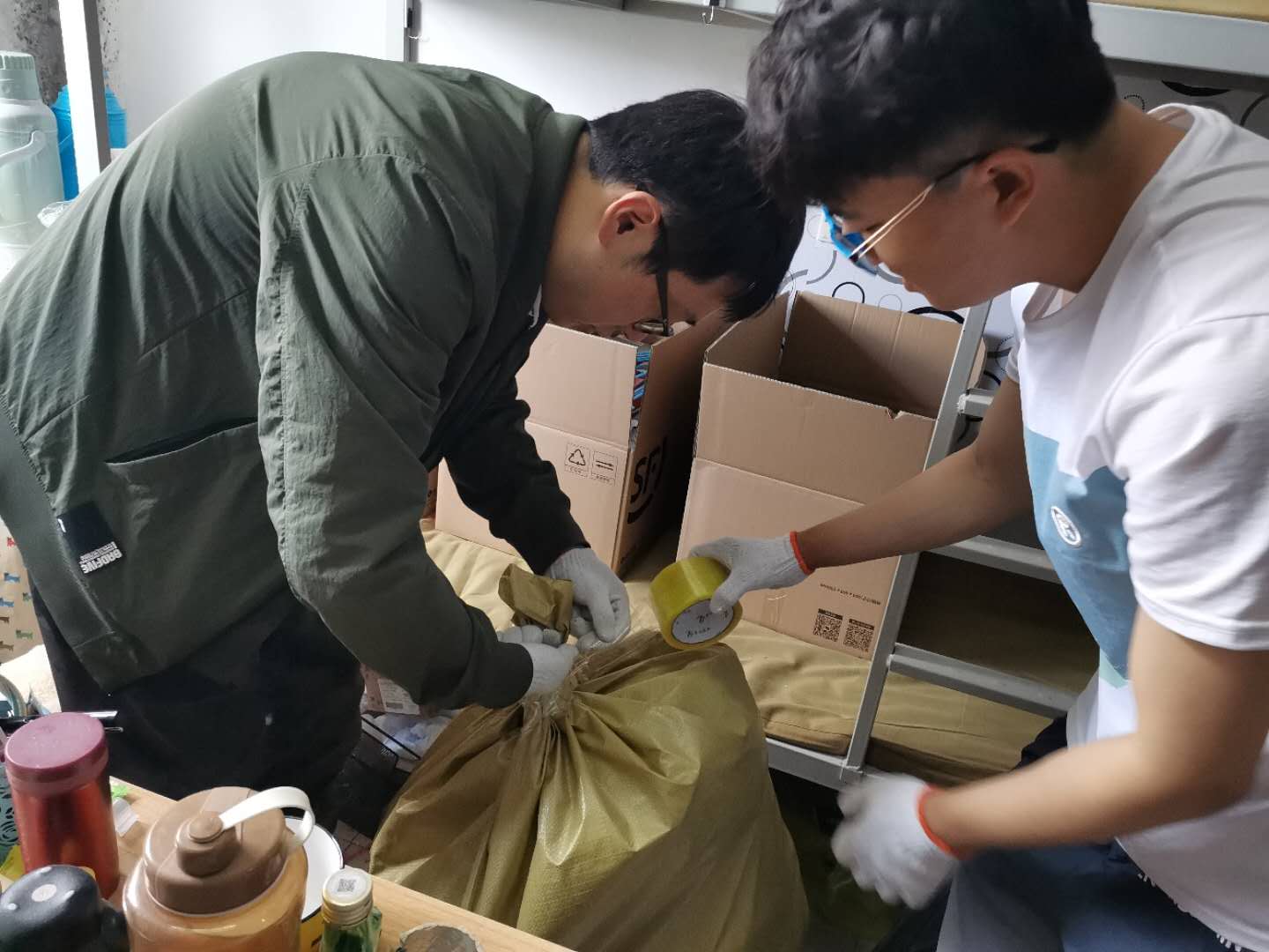 毕业生党员学生干部,不辞辛劳,不畏苦累,认真负责,周到细致,利用微信视频电话、腾讯会议等形式,与其他未能返校同学进行沟通联系,分清物品归属,清理废弃物品,整理打包行李,对于贵重物品、精密易碎物品,毕业生党员学生干部提前与同学们确定并填写物品清单,保障行李整理无遗漏,提升整体效率,保质保量完成毕业生行李整理工作。