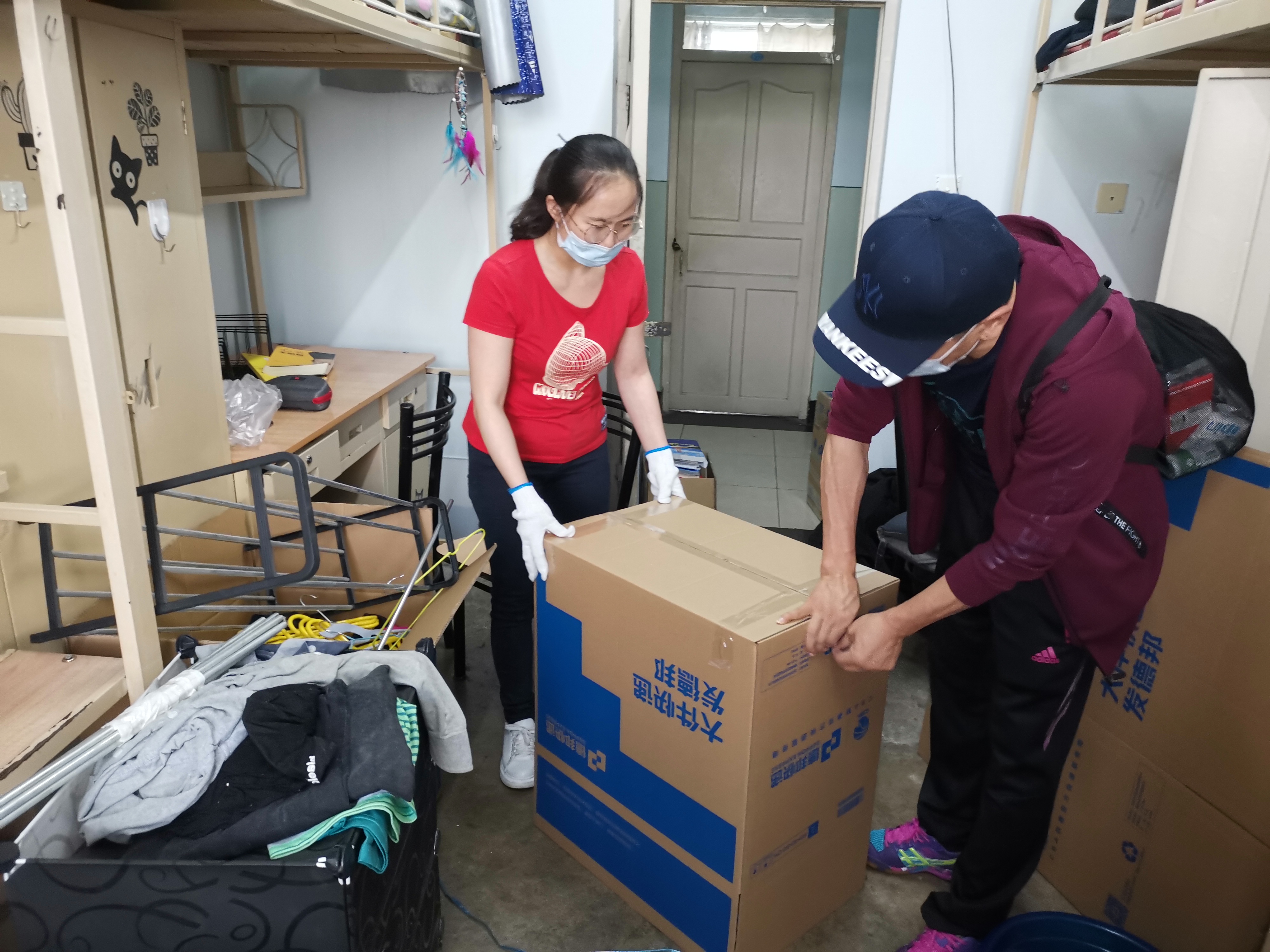 因疫情原因,2020年的毕业季较往年格外不同,51视频 的毕业生无法返校,为了帮助学生解决这一现实难题,6月14日51视频领导班子带领教师志愿者深入毕业生各个寝室帮助学生收拾寝室,打包托运行李,用爱为毕业生护航远行。