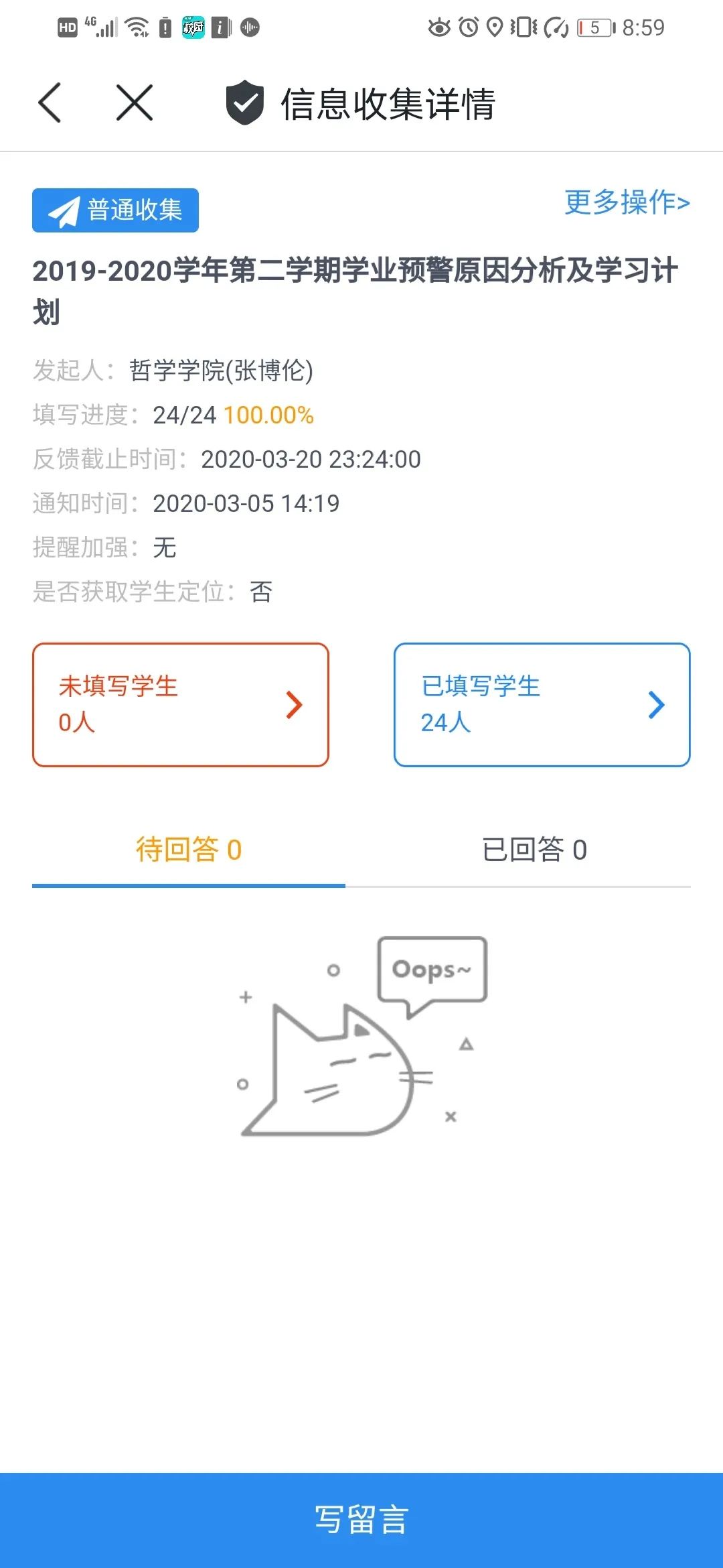 普通本科学生学籍管理实施细则》要求,认真开展线上学业预警与帮扶工作,着重做好对预警学生与家长的微信一对一反馈沟通工作。启用今日校园通知并开展预警原因分析整改计划记录,扎实做好学业预警与帮扶工作,通过学业预警制度,督促学生修正学业进度偏差、改善学业状态,以预警与帮扶工作为载体,切实加强学风建设。